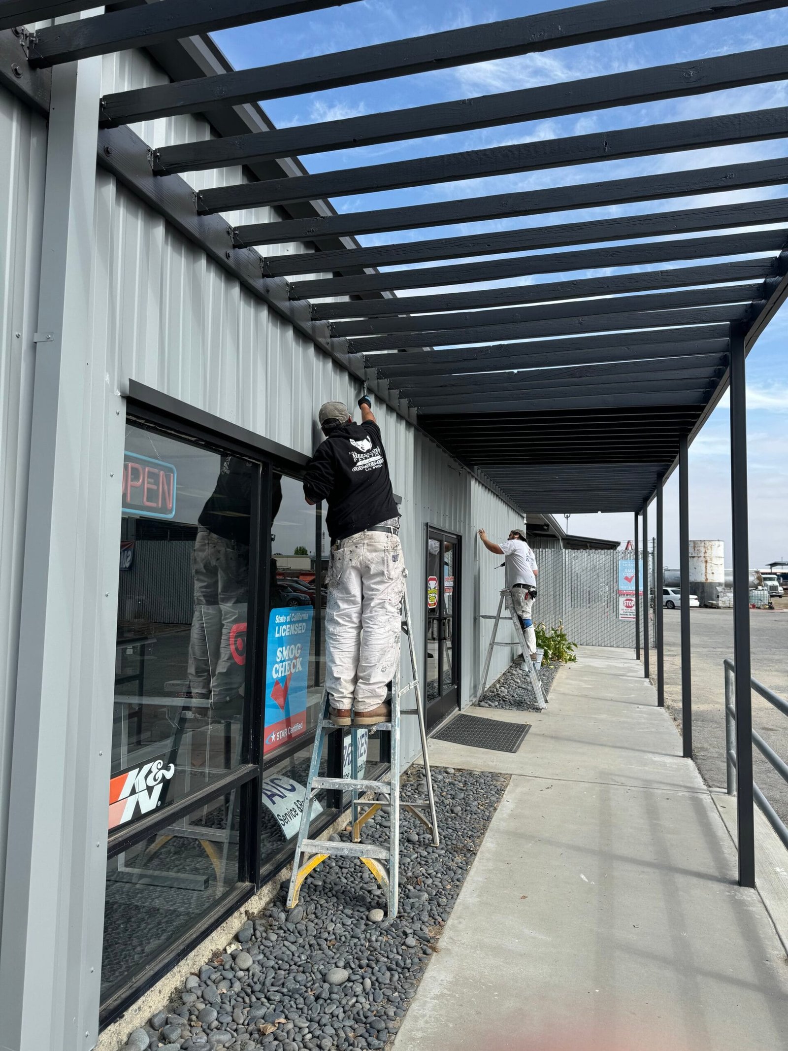 We provide durable exterior coatings tailored to a wide range of commercial properties. Our work includes stucco, concrete, metal siding, wood fascia, trim, railings, entry doors, storefronts, and full building repaints. Every project begins with careful prep to ensure a clean, long-lasting finish that holds up against Bakersfield’s sun, heat, and weather.